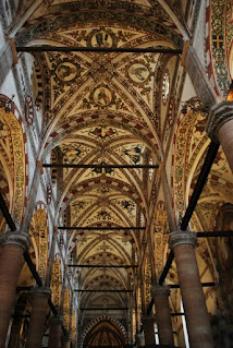 While examining the facade of the Sta. Anastasia and crossing under the suspended sarcophagus of Guglielmo da Castelbarco (another powerful figure in Dante's time) to the left of the church, we heard an angelic voice hovering from above.